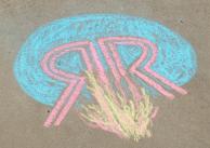 logo on the sidewalk.